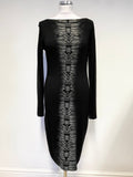 ISABEL DE PEDRO BLACK & GREY PATTERNED FRONT PANEL STRETCH JERSEY DRESS SIZE 16