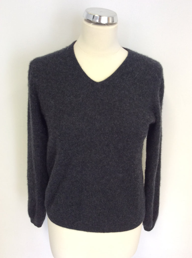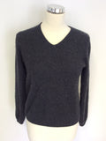 ISLE DARK GREY CASHMERE V NECK JUMPER SIZE L