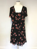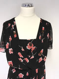 JACQUES VERT BLACK & RED FLORAL PRINT OCCASION DRESS SIZE 14