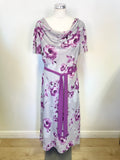JACQUES VERT GREY & DARK MAGENTA FLORAL PRINT COWL NECK FIT & FLARE DRESS SIZE 18