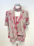 JACQUES VERT GREY & PINK FLORAL PRINT PEARL TRIMMED TOP & MATCHING SCARF SIZE 16