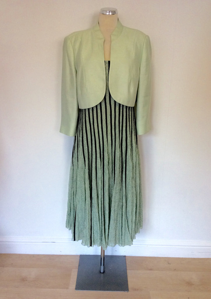 JACQUES VERT LIGHT GREEN & DARK GREY DRESS & BOLERO JACKET SIZE 20