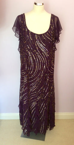 Jacques Vert Dark Purple Beaded & Sequinned Dress
