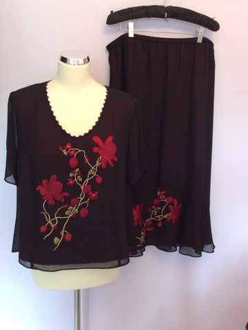 Jacques Vert Black & Dark Red Skirt & Top Suit