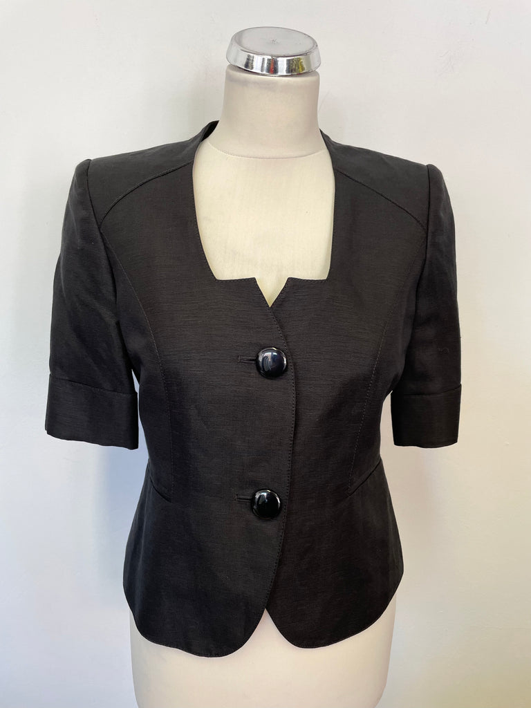 BRAND NEW JAEGER BLACK LINEN & SILK SHORT SLEEVE FITTED JACKET SIZE 10