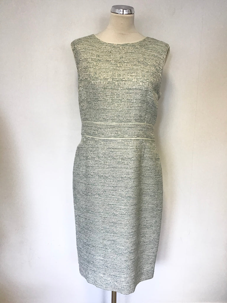 BRAND NEW JAEGER TURQUOISE, PALE GREEN & SILVER WEAVE PENCIL DRESS SIZE 16