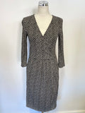 JAEGER BLACK & IVORY CHEVRON PRINT STRETCH V NECKLINE 3/4 SLEEVE PENCIL DRESS SIZE 8