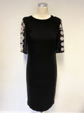 JAEGER BLACK WITH SHORT SILK FLORAL PRINT SLEEVE SHIFT DRESS SIZE 8