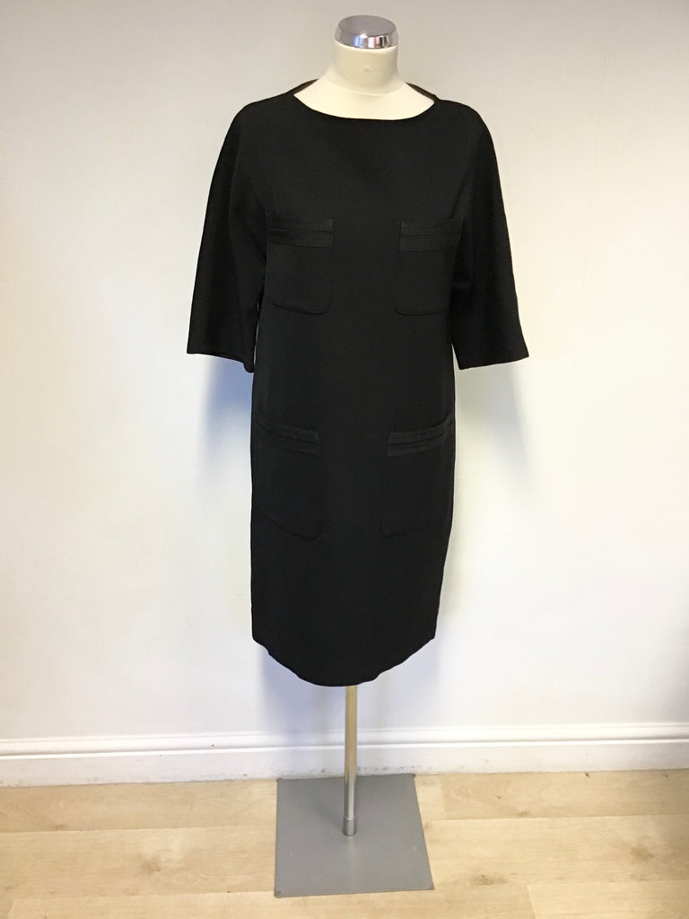 JAEGER BLACK WOOL SHORT SLEEVE SHIFT DRESS SIZE S