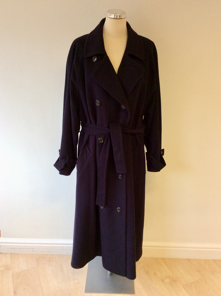JAEGER DARK BLUE WOOL & CASHMERE TIE BELT LONG COAT SIZE 16 FIT 18/20