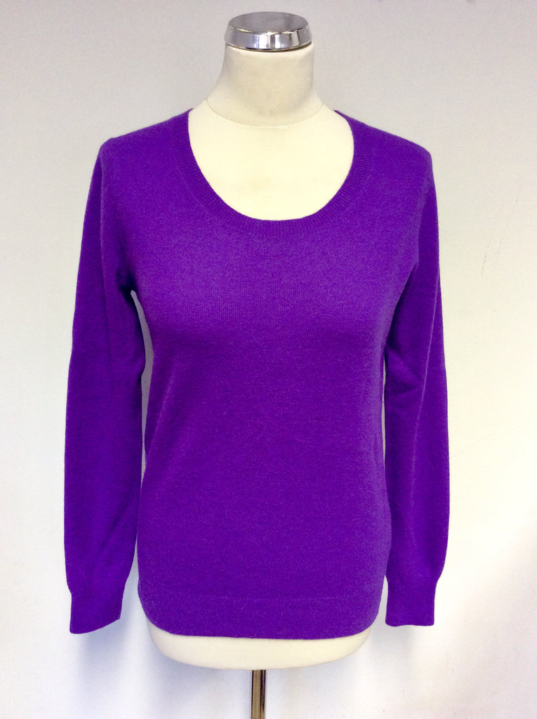 JAEGER PURPLE SCOOP NECK WOOL & CASHMERE JUMPER