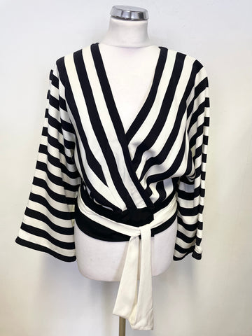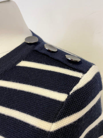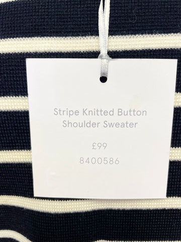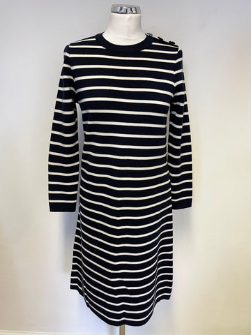 BRAND NEW JAEGER NAVY BLUE & WHITE STRIPE LONG SLEEVE KNIT DRESS SIZE S