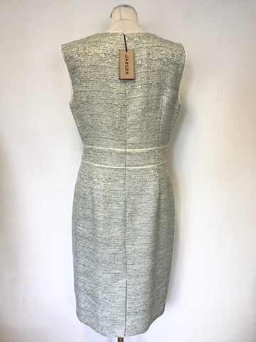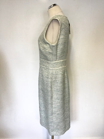 BRAND NEW JAEGER TURQUOISE, PALE GREEN & SILVER WEAVE PENCIL DRESS SIZE 16