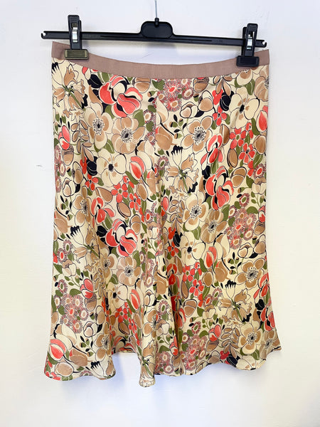 JESIRE 100% SILK MULTI COLOURED FLORAL PRINT A-LINE SKIRT SIZE 8 UK 12