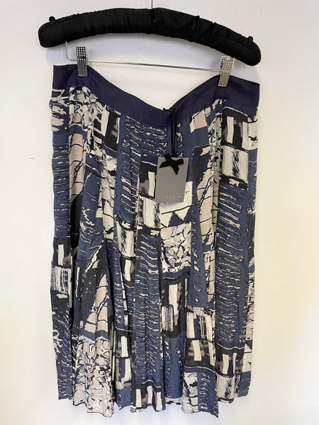 BRAND NEW JIGSAW BLUE PATTERNED SILK FLARED SKIRT SIZE 14