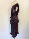 JIGSAW AUBERGINE PRINT TIE WAIST SILK SLIP DRESS SIZE 10