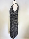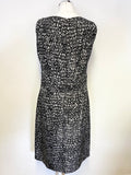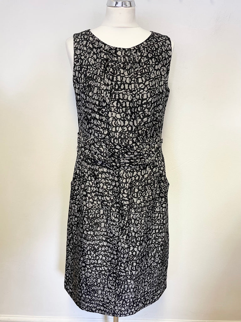 JIGSAW BLACK & GREY PRINT SLEEVELESS SILK DRESS SIZE 10