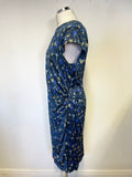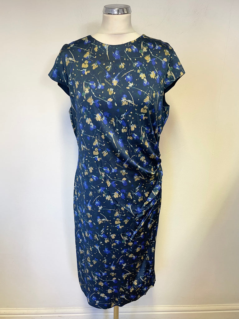 JIGSAW BLUE & CAMEL FLORAL PRINT CAP SLEEVED PENCIL DRESS SIZE 14