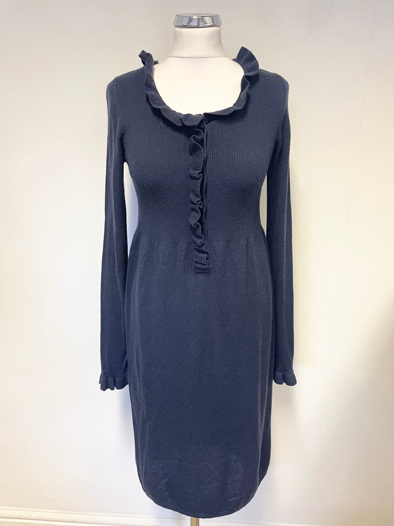 JIGSAW BLUE FRILL TRIM LONG SLEEVED KNIT DRESS