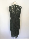 JIGSAW BOTTLE GREEN LACE SLEEVELESS PENCIL DRESS SIZE 14