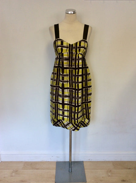 JIGSAW BROWN & LIME PRINT SILK STRAPPY DRESS SIZE 10