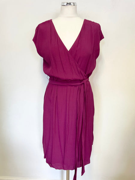 JIGSAW CRANBERRY PINK WRAP ACROSS TOP BELTED DRESS SIZE 10