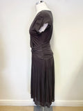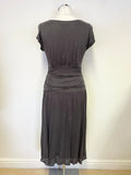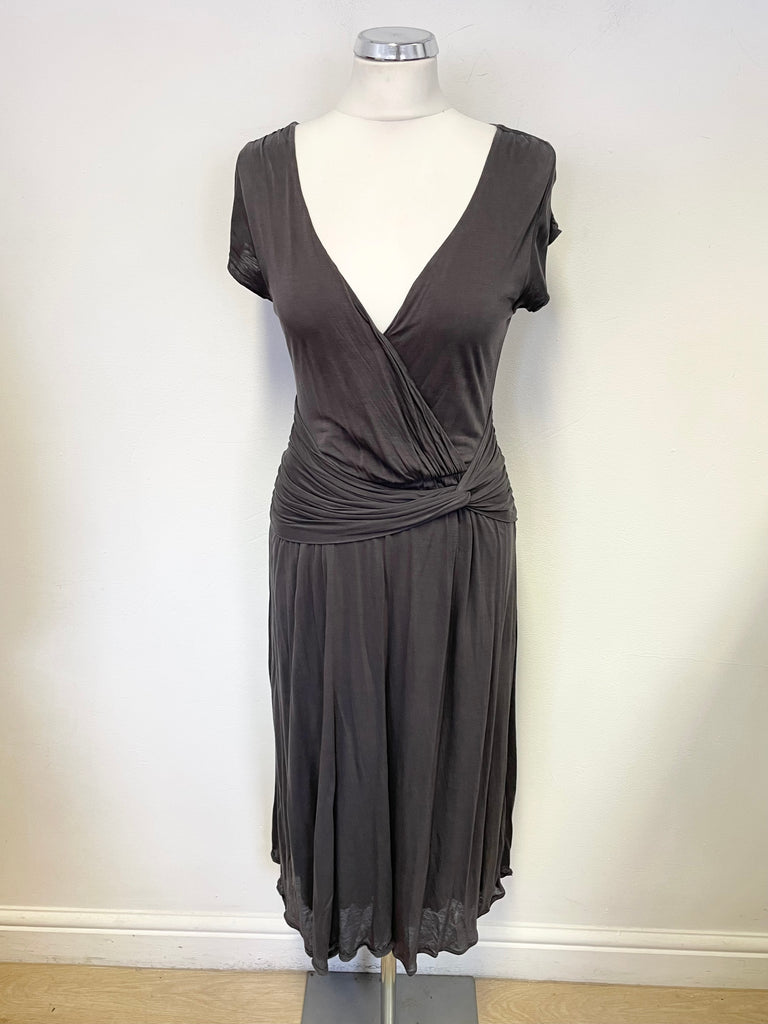 JIGSAW DARK GREY V NECK CAP SLEEVED STRETCH JERSEY DRESS SIZE M