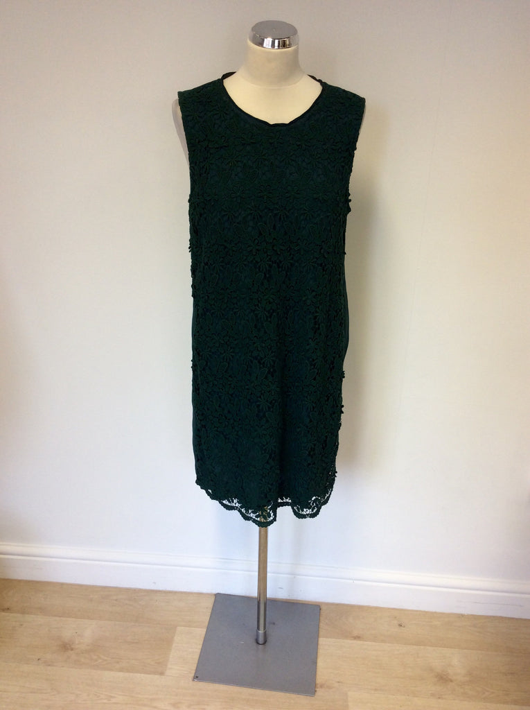 JIGSAW GREEN SILK & COTTON LACE FRONT DRESS SIZE 12