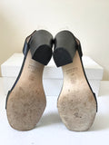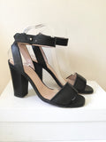 JIGSAW MIA BLACK LEATHER ANKLE STRAP BLOCK HEEL SANDALS SIZE 4/37