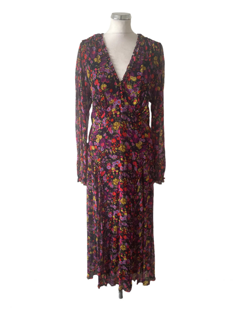 JIGSAW MULTI COLOURED FLORAL PRINT LONG SLEEVED MAXI DRESS SIZE 14
