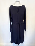 JIGSAW NAVY BLUE LONG SLEEVE TIE WAIST DRESS SIZE 16