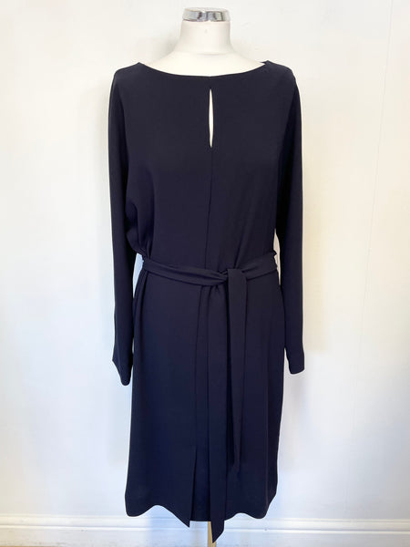 JIGSAW NAVY BLUE LONG SLEEVE TIE BELTED DRESS