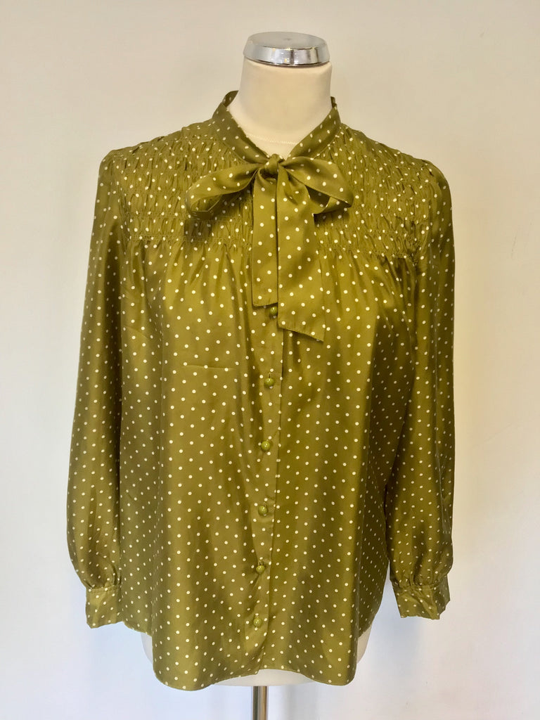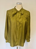 JIGSAW OLIVE GREEN SPOTTED SILK TIE BOW BLOUSE SIZE 12