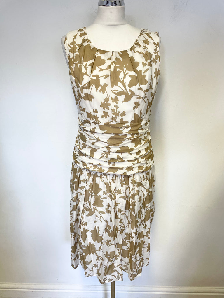 JIGSAW TAUPE & IVORY FLORAL PRINT SLEEVELESS FIT & FLARE DRESS