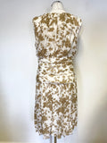 JIGSAW TAUPE & IVORY PRINT SILK & COTTON SLEEVELESS DRESS SIZE 14