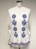 JIGSAW WHITE & BLUE EMBROIDERED COTTON & LINEN BLEND JUMPER SIZE S