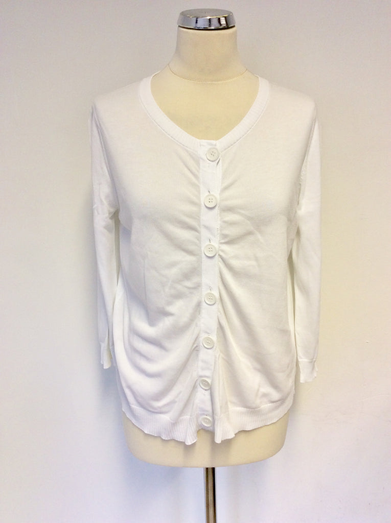 JIGSAW WHITE SCOOP NECK COTTON CARDIGAN SIZE 12