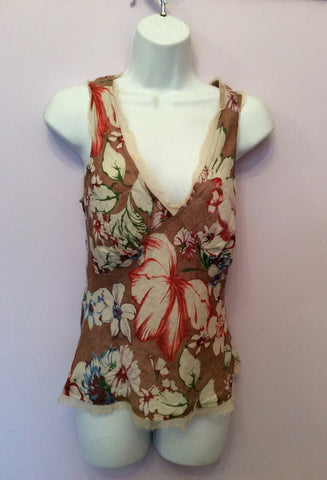 JIGSAW LIGHT BROWN FLORAL PRINT LINEN TOP SIZE 8