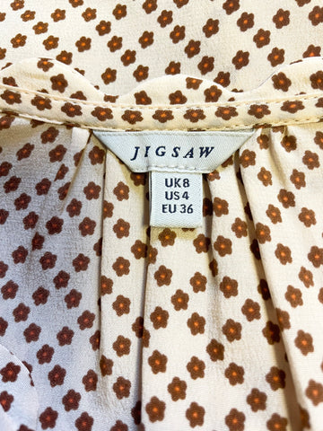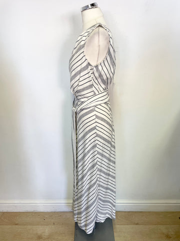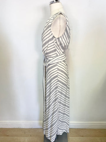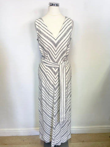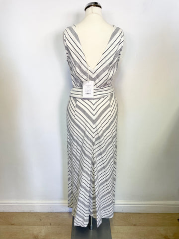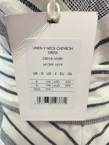 BRAND NEW JIGSAW IVORY LINEN CHEVRON PRINT A-LINE SLEEVELESS MIDI DRESS SIZE 8