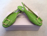 Brand New Jimmy Choo Neon Green Morse Buckle Trim Slingback Flats Size 7/40