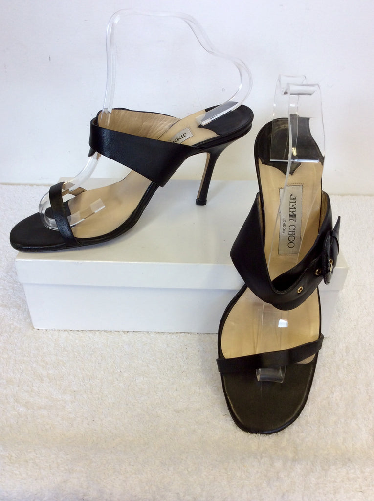 JIMMY CHOO BLACK BUCKLE TRIM STRAP HEELED MULES SIZE 7.5/41