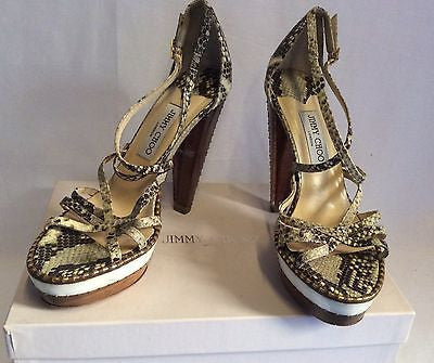 Jimmy Choo Zena Beige Natural Snakeskin Heeled Sandals