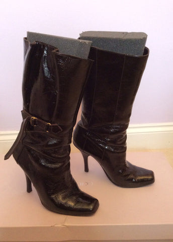 Jimmy Choo Dark Brown Crushed Patent Leather Calf Length Boots