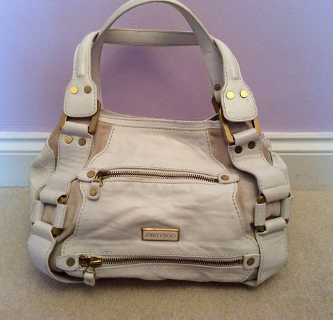 Jimmy Choo White Leather & Cream Suede Trim Mahala Bag