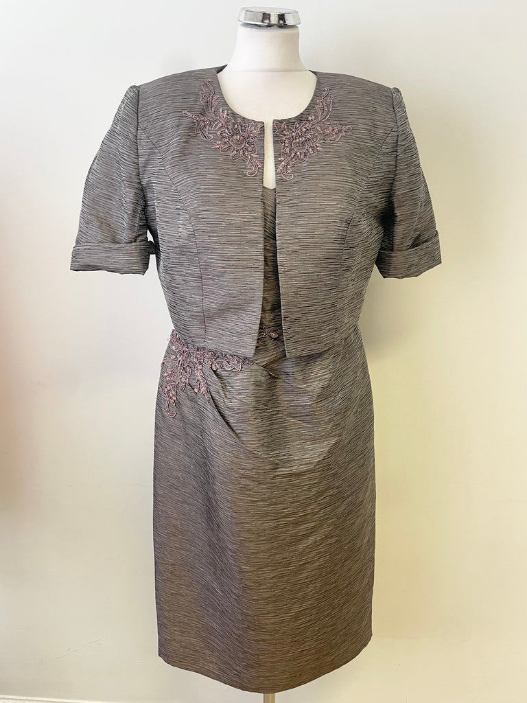 JOHN CHARLES MAUVE PINK MIX BEADED PENCIL DRESS & BOLERO JACKET SPECIAL OCCASION SET SIZE 14