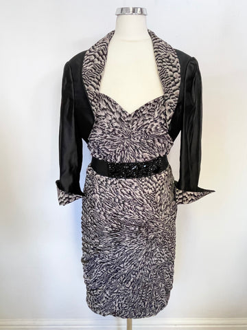 JOHN CHARLES BLACK & BROWN PRINT DRESS & SILK BOLERO JACKET SIZE 14