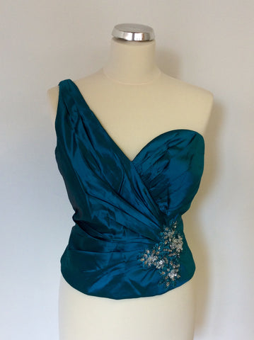 BRAND NEW JOHN CHARLES KINGFISHER GREEN SILK ONE SHOULDER DIAMANTÉ TRIM BODICE TOP SIZE 14