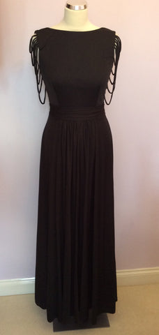 John Charles Black Beaded & Sequinned Long Evening Cocktail Dress