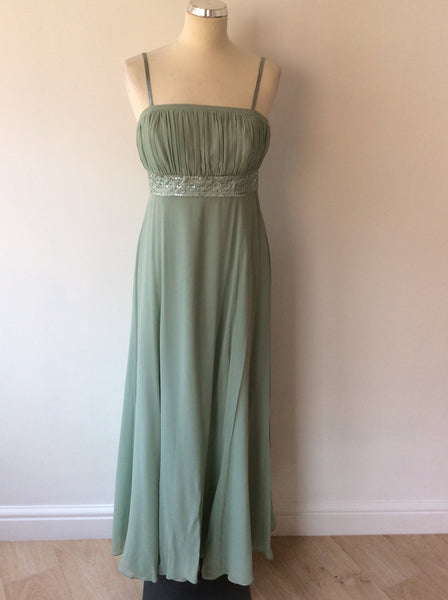 JOHN LEWIS PALE GREEN SILK STRAPPY/STRAPLESS MAXI DRESS SIZE 12