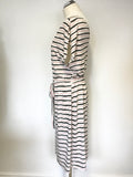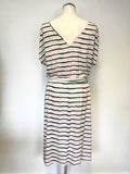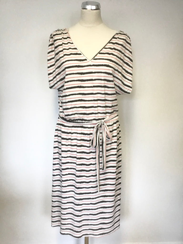 WEEKEND BY JOHN LEWIS IVORY,BLACK & PINK STRIPE STRETCH JERSEY TIE BELT DRESS SIZE 14